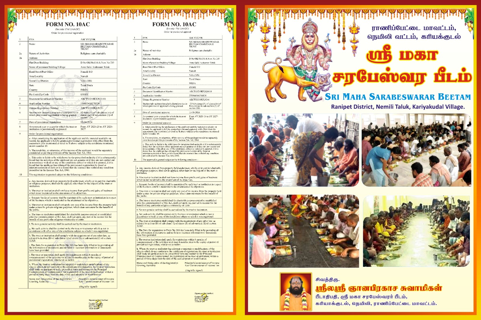 Join us in supporting Anna Daanam at Sri Maha Sarabeswarar Beetam. Your donations help provide meals to those in need. Every contribution, big or small, plays a vital role in continuing this noble service. Thank you for your generosity.